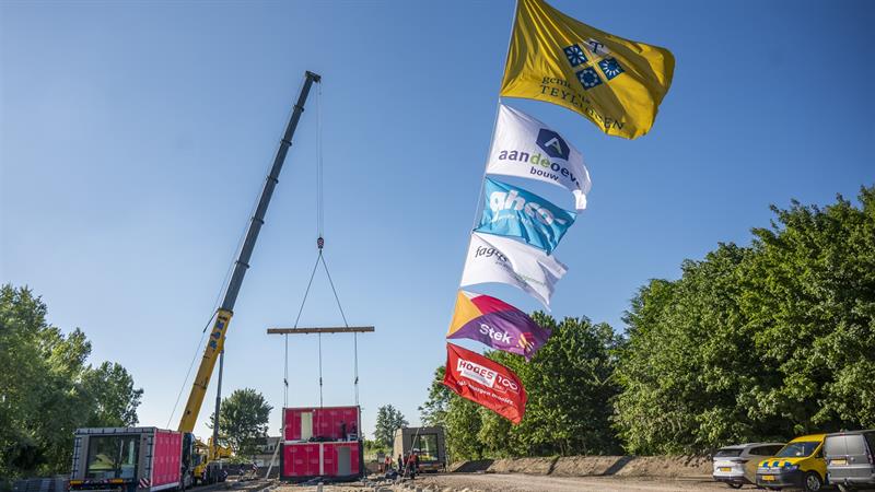 Op maandag 19 mei 2025 is de bouw van 40 flexwoningen voor woningzoekenden aan de Teylingerdreef in Voorhout van start gegaan.