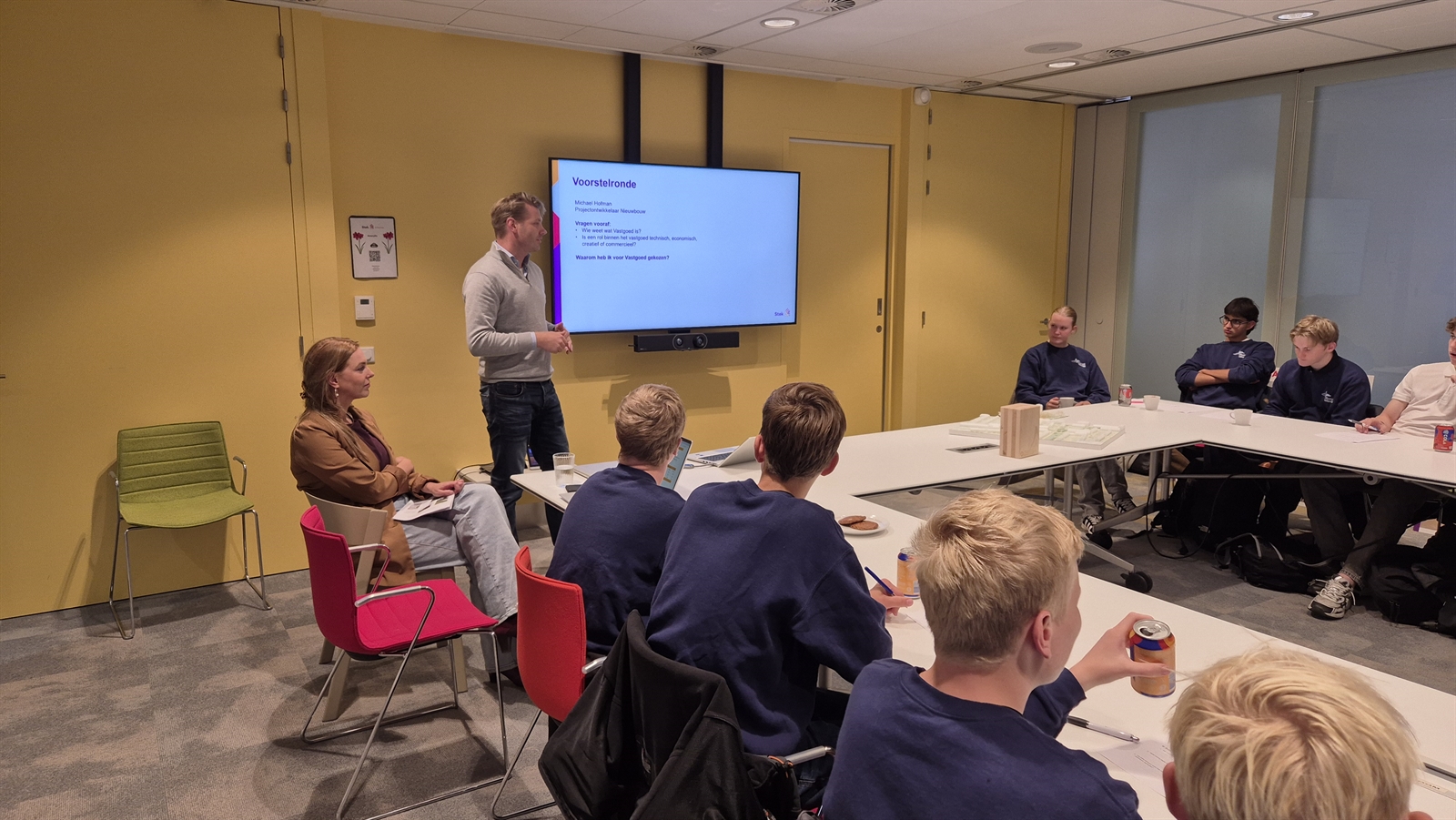 Na de introductie nam collega Michael de leerlingen mee in de wereld van vastgoed en vertelde meer over het project Geestwater. Omdat dit project in Lisse ligt, was het extra interessant voor de leerlingen om te zien hoe er in hun eigen woonplaats wordt gewerkt aan duurzame en betaalbare woningen. Er ontstonden boeiende gesprekken en leerlingen stelden leuke en verrassende vragen. Niet alleen over duurzaamheid en de toekomst van wonen, maar ook over praktische zaken zoals inschrijven voor een woning.