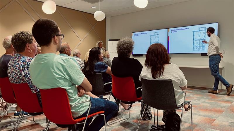 Deze week kozen de nieuwe huurders van appartementengebouw Buitenrijk in Noordwijk hun woning. Op het kantoor van Stek kregen zij informatie over de woningen, de installaties en konden zij plattegronden bekijken. Daarna was het keuzemoment. ‘Ik ga na 49 jaar mijn huidige woning verlaten, maar ben heel blij met mijn nieuwe gelijkvloerse appartement,’ zei een van de aanwezigen.