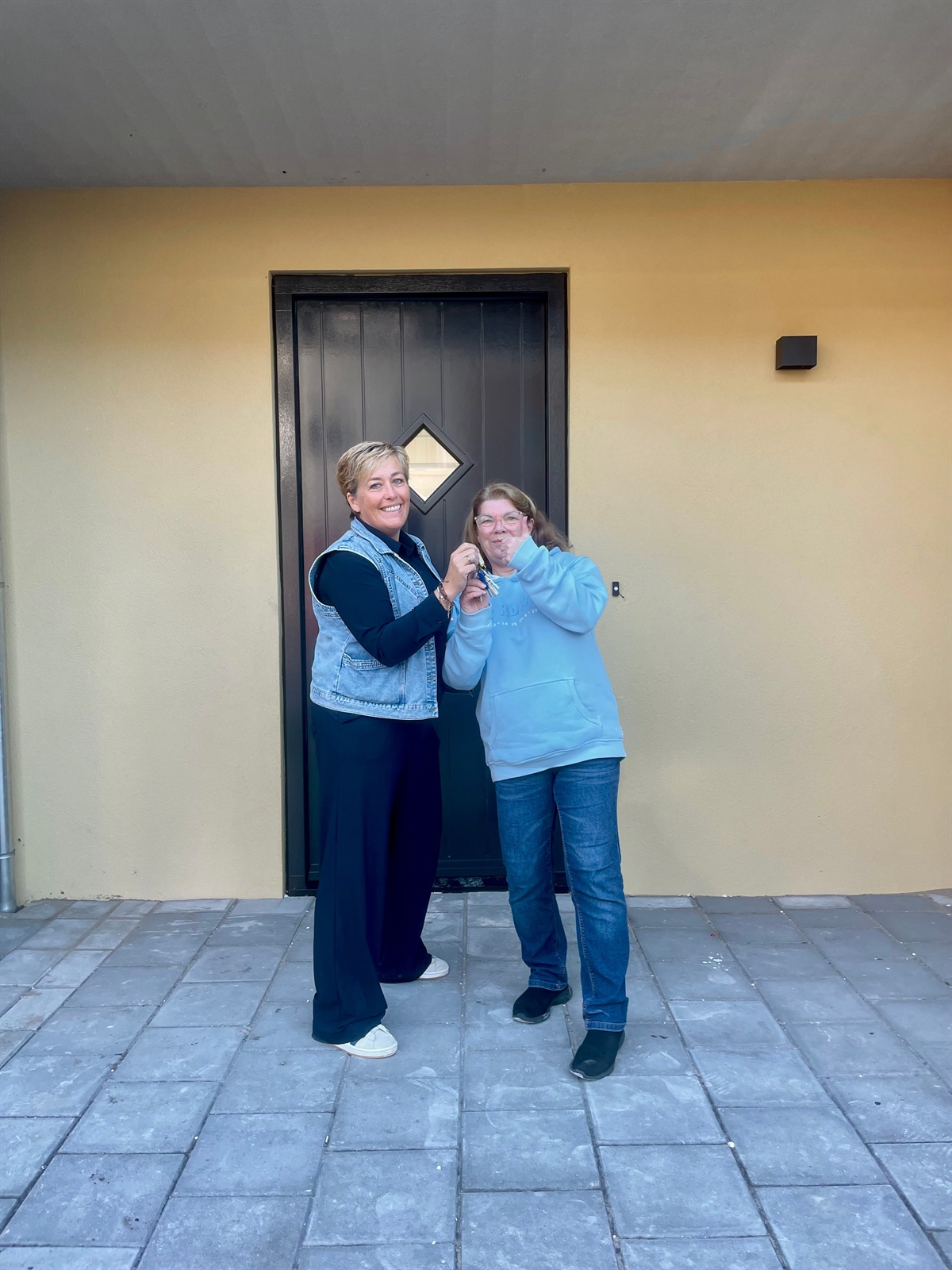 Nieuwe bewoonster Ellie straalt als ze de sleutel in ontvangst neemt van woonmakelaar Christa: ‘Ik wilde altijd al een keer een hele nieuwe woning. En dat is nu gelukt. Alles is fris, modern én gelijkvloers. Vooral dat laatste was ook echt een grote wens.’ Terwijl de sleutels worden overhandigd, lopen de eerste bewoners al met emmers en schoonmaakspullen naar binnen. Klaar om aan de slag te gaan. Ook de behangers zijn al ingeseind, het nieuwe leven in Goudsbloem kan direct beginnen.