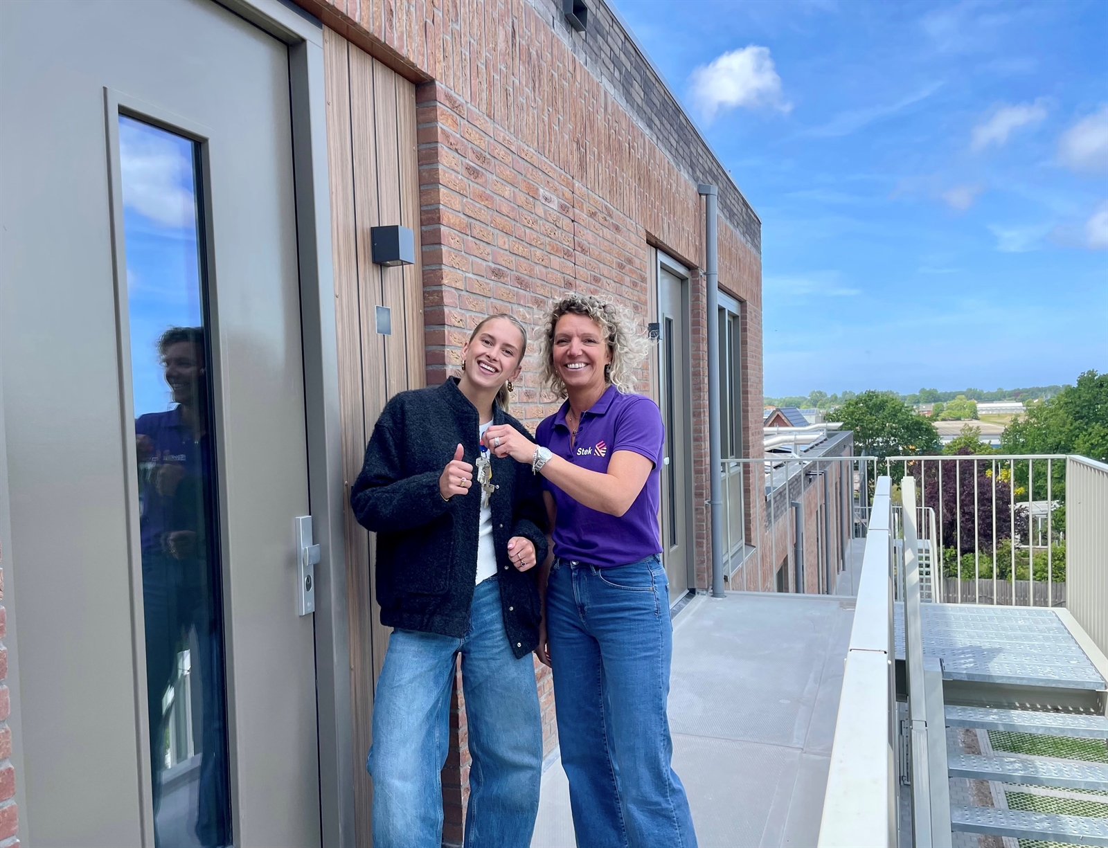 Maandag wapperden vrolijke vlaggen aan de 1e Loosterweg in Hillegom. En met een goede reden: ze waren speciaal uitgehangen omdat de eerste bewoners van het woongebouw De Pioentulp de sleutel van hun nieuwe appartement kregen.