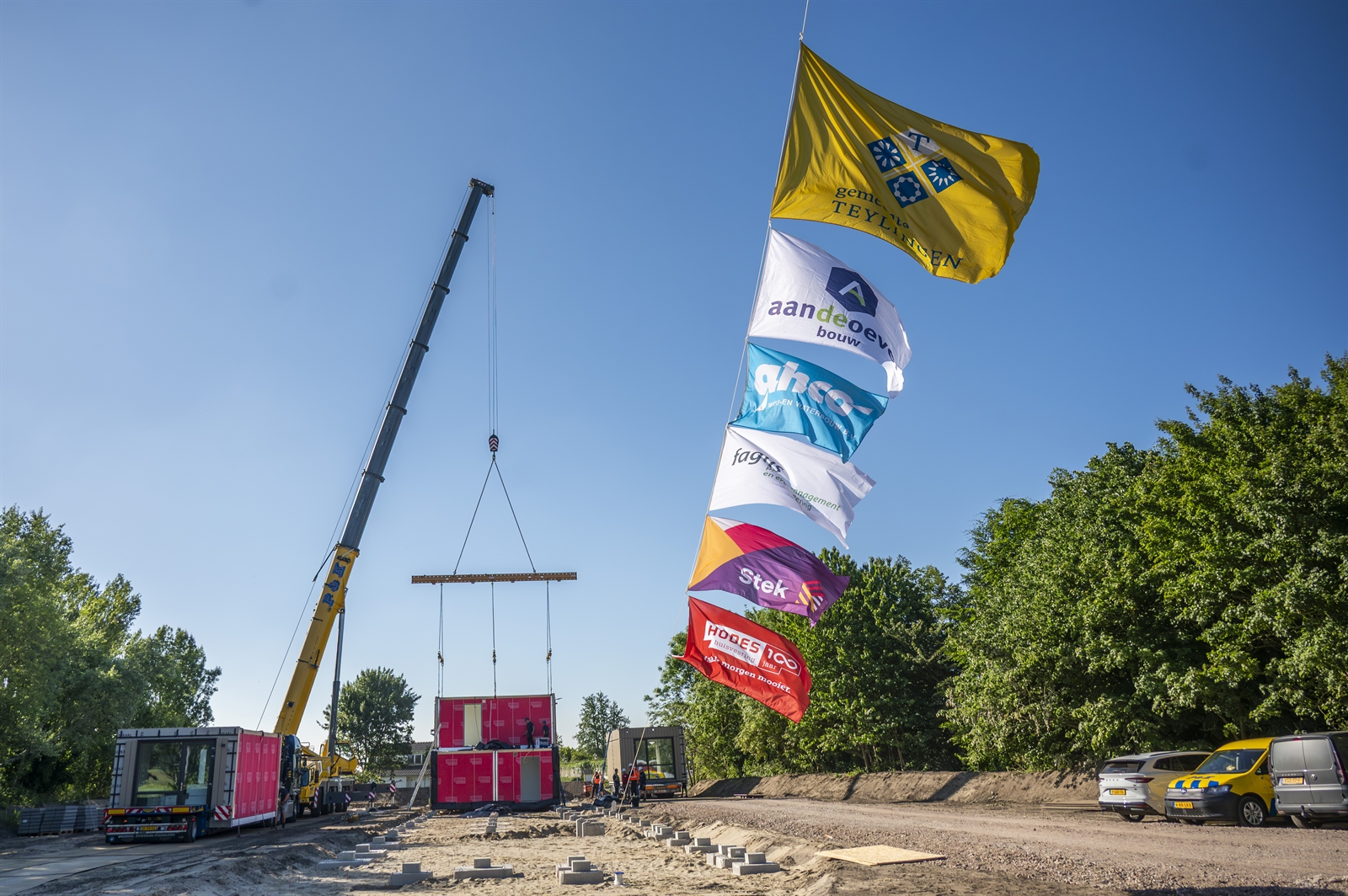 Op maandag 19 mei 2025 is de bouw van 40 flexwoningen voor woningzoekenden aan de Teylingerdreef in Voorhout van start gegaan.