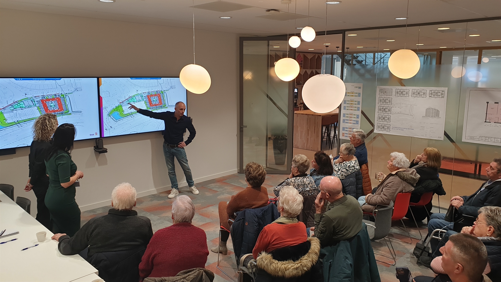 De vele regen van de afgelopen tijd zorgde voor een modderpoel op de bouwplaats. Maar het was geen belemmering om de bouw van de Witte Tulp te starten. Van Rhijn bouw is druk bezig met het grondwerk. De oplevering van de appartementen van Stek staat gepland begin 2025.