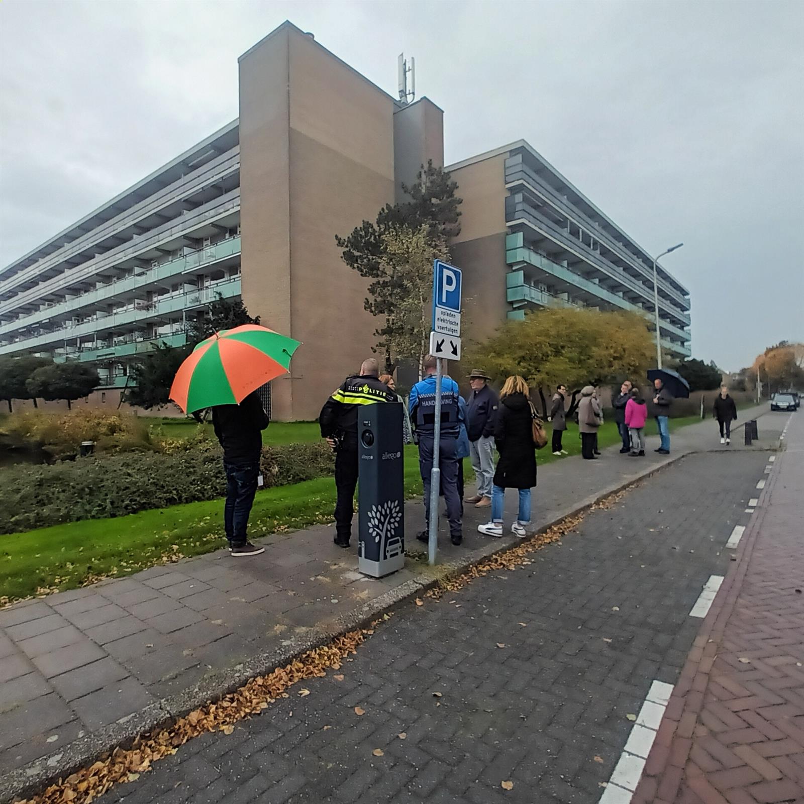 Voor de wijkschouw in Teylingen verzamelde een gevarieerd gezelschap bij de Kooiflats in Sassenheim.