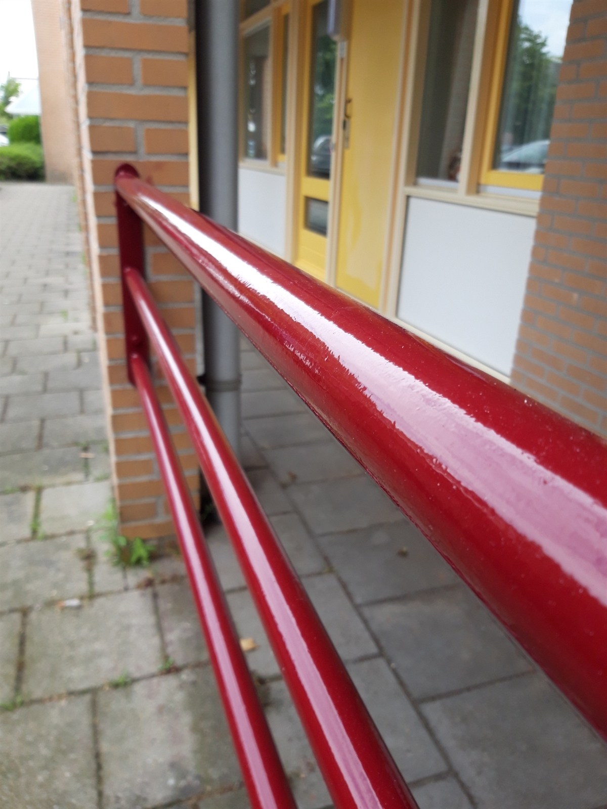“Wat een prachtige glans. pijn in mijn ogen.. nieuwe zeker? Nee, mevrouw, gewoon de stalen leuningen opnieuw geschilderd.”