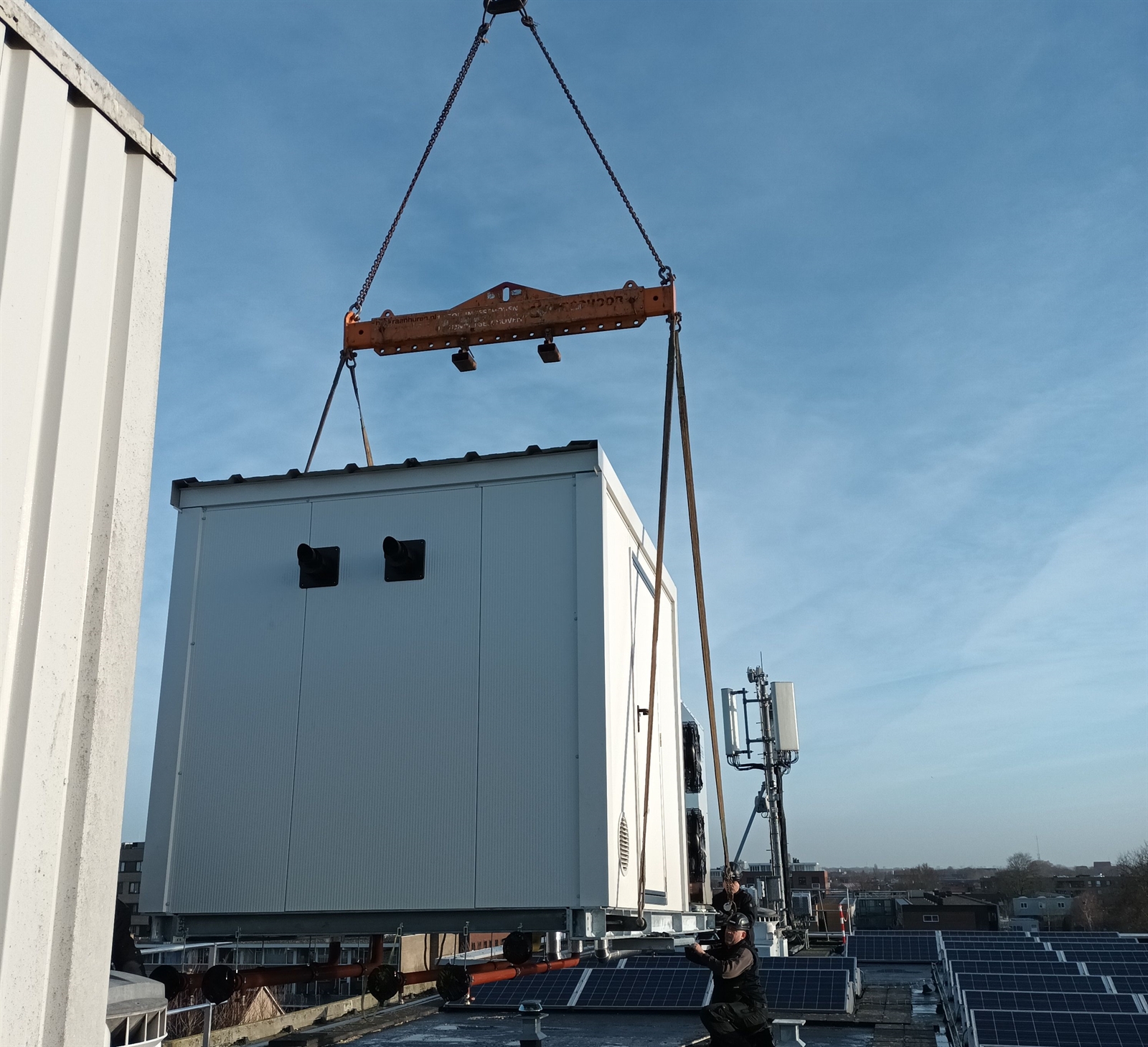 We weten dat werkzaamheden altijd invloed hebben op het dagelijks leven. Daarom kiezen we hier voor een aanpak met zo min mogelijk overlast. Op het dak komen kant‑en‑klare ‘warmteskids’. Dat zijn compacte installaties die in de fabriek al zijn voorbereid. Zo werken we sneller op locatie en is het tot wel drie maanden eerder klaar dan normaal. Bewoners hebben maar een paar weken hinder. Deze manier van werken zorgt ook voor minder transport en minder afval.