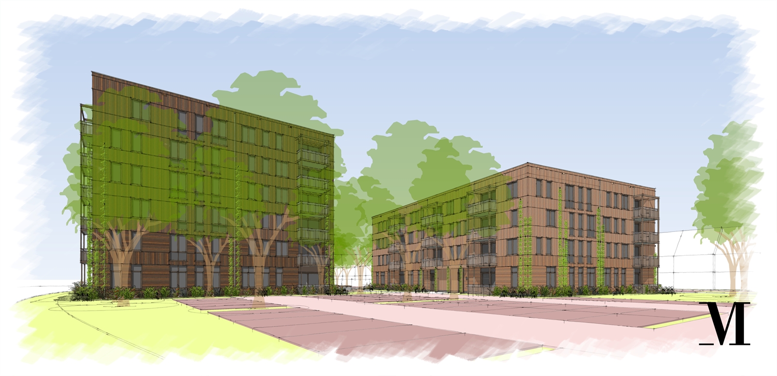 Ontwikkeling van houten woongebouw met 40 driekamerappartementen in Nieuw Boekhorst Voorhout.