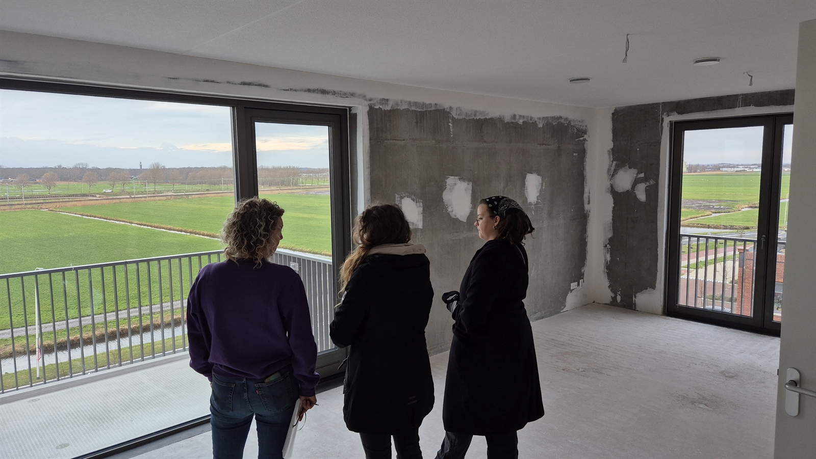 Een huurder die een sleutel in ontvangst nam, is blij met haar appartement op de bovenste verdieping. Ze gaf aan dat het wachten niet leuk was. Maar gaat nu vol energie schilderen en behangen om voor de kerst te kunnen verhuizen. “Alle verf en behang staan klaar en ik heb drie weken vrij genomen.” Iedere huurder heeft in een persoonlijke overdracht de belangrijkste zaken over de nieuwe woning uitgelegd gekregen. Wonen in een energiezuinige woning is echt anders dan in een traditionele woning. Daarom is er extra tijd voor uitleg.